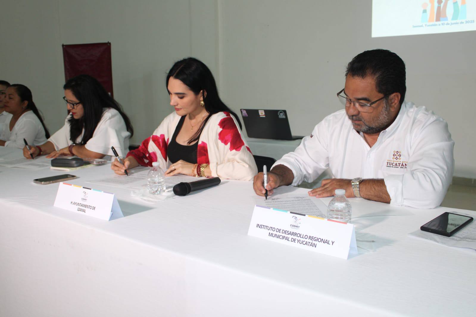 Durante el evento, firmaron los alcaldes —o sus representantes— de los municipios de Bokobá, Conkal, Dzemul, Dzidzantún, Dzilam González, Hoctún, Huhí, Kantunil, Motul, Sanahcat, Dzudzal, Tamek, Tekantó, Temax, Tepakán, Teya, Tixkokob, Tunkás, Xocchel y Ucú.